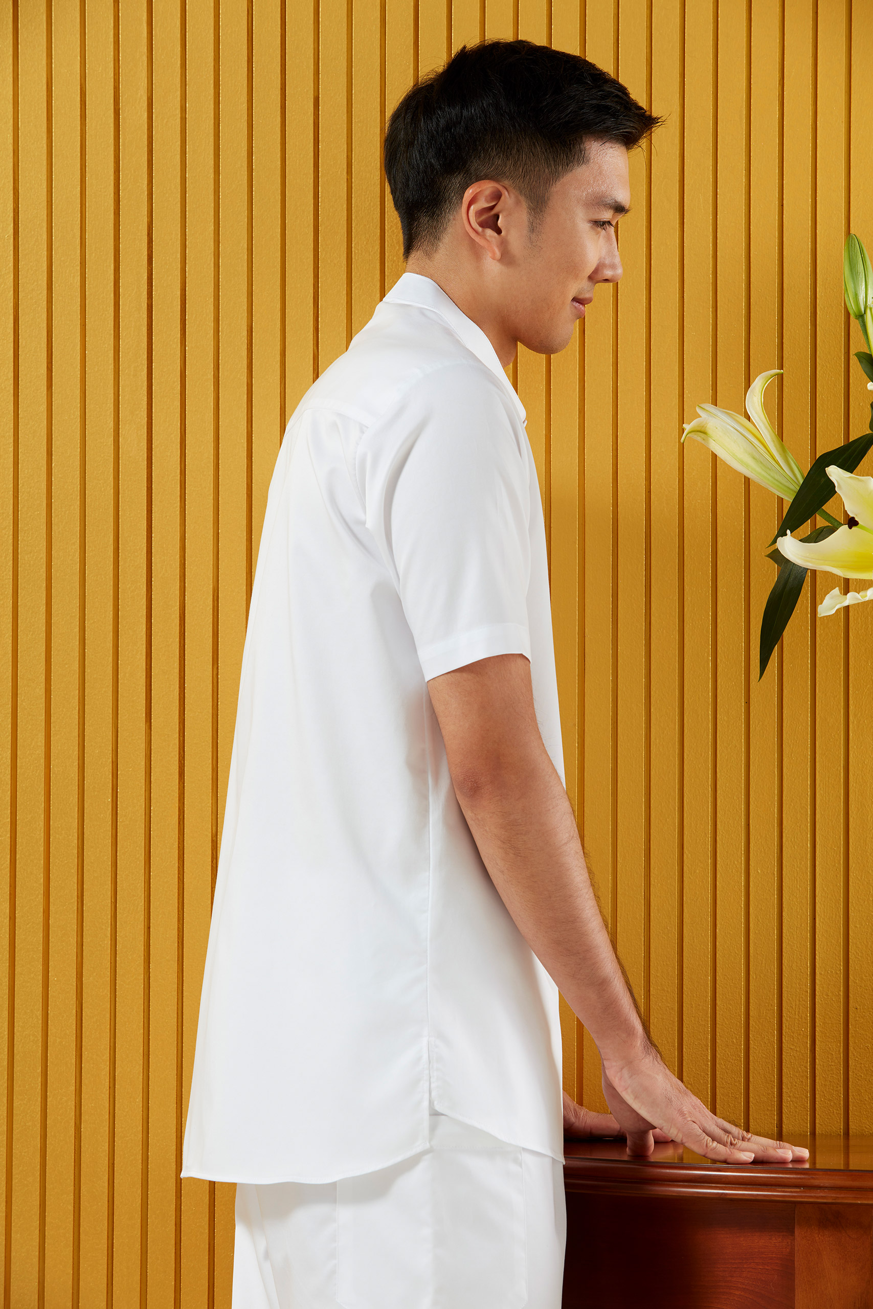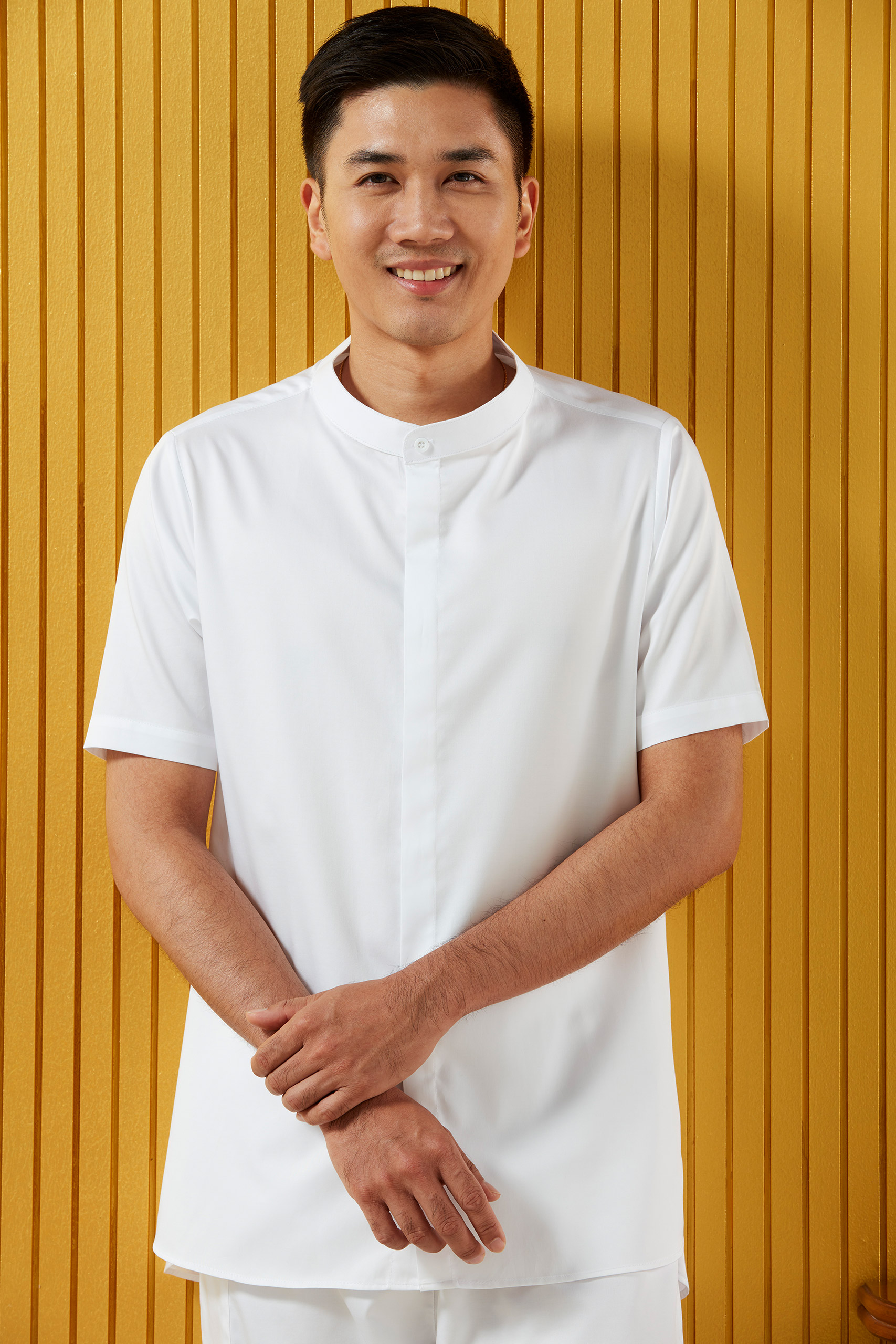 @ เสื้อชาย >>> เสื้อคอจีนทันสมัย แขนสั้น สาบกระดุมซ่อน(สาบเบิ้ล)